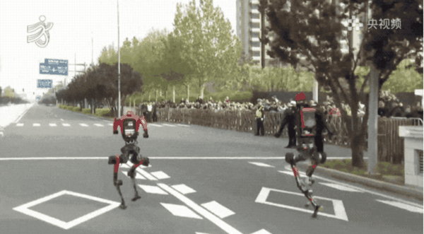 还有机器人跑到一半突然停止摆臂,单臂凌空,一副杨过独战天下的武侠范。