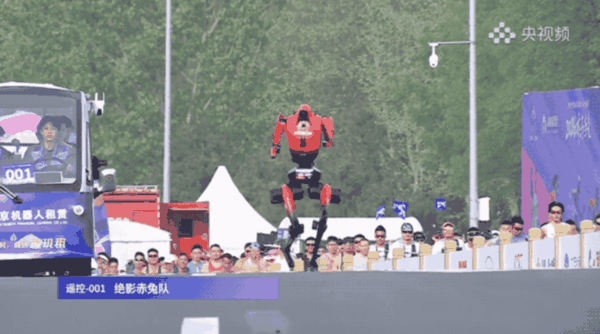 一台机器人冲过终点之后,可能是过于兴奋,一鼓作气冲进了旁边的绿化带,最后被救护人员抬了出来。也有选手在终点前来了一段百米冲刺的蛇形走位,经典场面之王不见王。