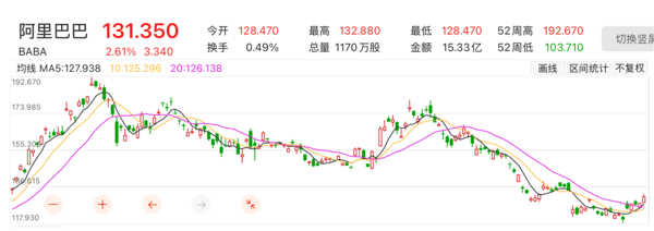去年10月至今,阿里巴巴股价整体呈震荡下行趋势。