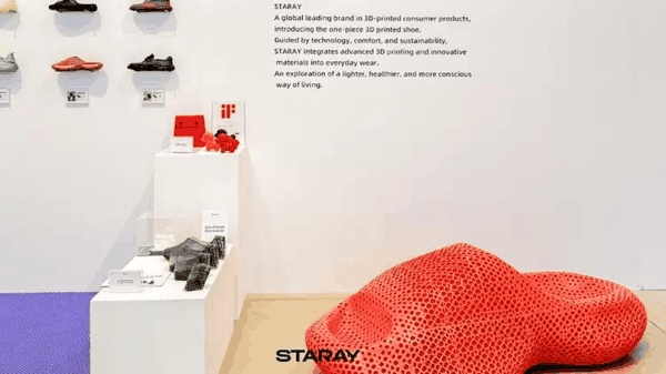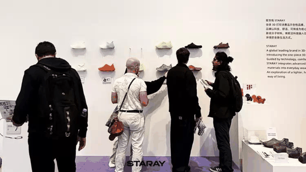 在展会现场,星世线以“材料新生·设计赋能·人本生活”为核心叙事线,构建起从液态生物基材料、智能结构生成、一体化高速打印到成品鞋履的全流程可视化展示场景,直观呈现中国3D打印技术落地成果与设计美学。这一展示体系,不仅将复杂的数字化制造工艺转化为全球观众可感知、可理解的视觉语言,更传递出三层深层价值:以设计挖掘材料潜能,让环保科技落地生活;以设计优化生产工艺,让颠覆性技术实现规模化量产;以设计连接科技与人文,让中国制造拥有打动世界的审美表达。