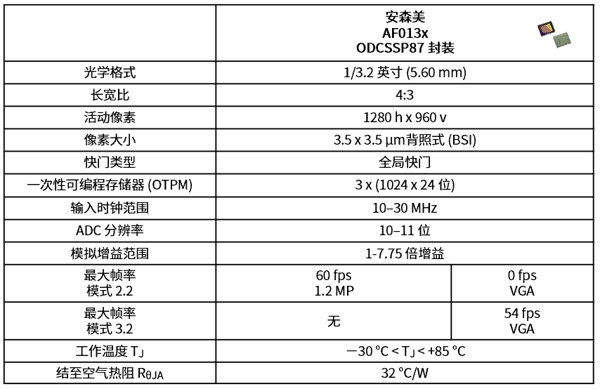 - AF013x 搭载的 120 万像素 BSI 全局快门,可使 CMOS 图像传感器实现超高精度的深度感知能力。