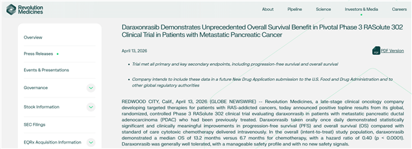 Revolution Medicines表示,该口服药有望为胰腺癌患者带来一种新的治疗选择。胰腺癌是一种高度侵袭性的疾病,在所有主要癌症中五年生存率最低,仅为13%。
