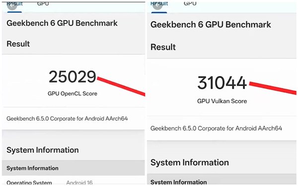 此外,该机在Geekbench 6的测试中同样刷新了记录。其GPU的两项关键跑分分别达到了25029和31044分,不仅代表了目前的行业最高水准,更是在跑分数据上实现了对竞争对手高通的全面超越。