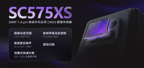 思特威推出50 MP手机CMOS新品SC 575 XS:搭载Lofic HDR 3.0,最高动态范围110 dB