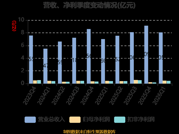 截至2026年一季度末,公司经营活动现金流净额为1.03亿元,同比增长3.25%;筹资活动现金流净额234.27万元,同比减少333.07万元;投资活动现金流净额-6622.2万元,上年同期为-1.75亿元。