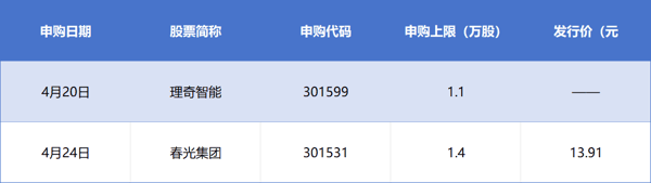 本周(4月20日至4月26日),沪深两市有2只新股申购,来自创业板。