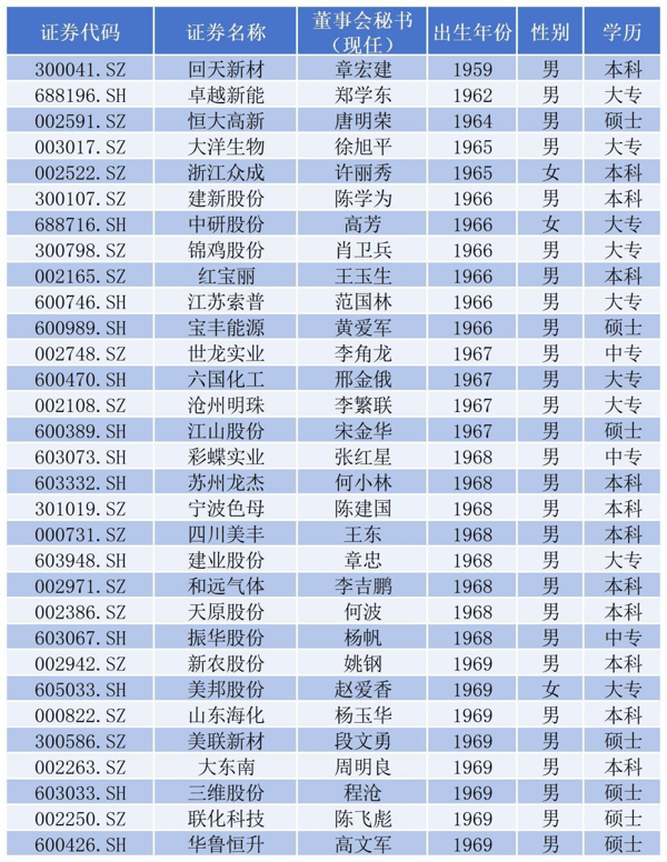 最年长的回天新材董秘67岁,从公司上市就一直干,任职超10年,行业经验丰富;最年轻的天富龙董秘才30岁,是材料学硕士,之前在券商做过研究员,擅长和机构沟通。