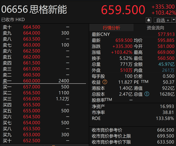 4月16日, 思格新能 正式挂牌,以不到4年的跨度刷新中企赴港上市最快纪录。按2.47亿股的总股本及最新汇率折算,盘中最高市值冲破1500亿元人民币关口。截至收盘报659.5港元,其总市值稳定在1400亿元人民币以上。