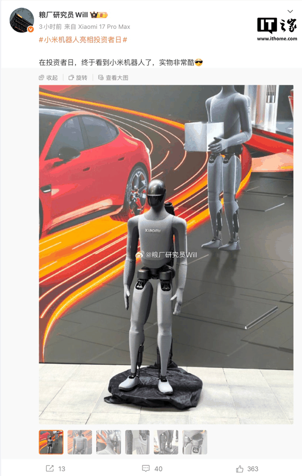 IT之家 4 月 27 日消息,在今天举行的小米投资者日上,新款小米机器人正式亮相, 博主 @粮厂研究员 Will 发文 ,展示了这款全新小米机器人的细节。