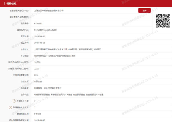 协会网站显示,犇百年私募成立时间为2025年3月,注册资本1亿元,机构类型为私募股权、创业投资基金管理人,业务类型私募股权投资基金、私募股权投资类FOF基金、创业投资基金、创业投资类FOF基金。股权结构方面,内蒙古 蒙牛乳业 (集团)股份有限公司占股98%,北京泰擎企业管理咨询合伙企业(有限合伙)持股2%。