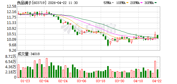 4月22日,休闲 零食 第一股的 良品铺子 低开低走,截至午间收盘,报10.15元/股,跌幅达2.68%。