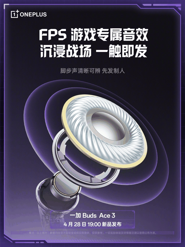 一加Buds Ace 3耳机官宣4月28日发布,FPS游戏专属音效