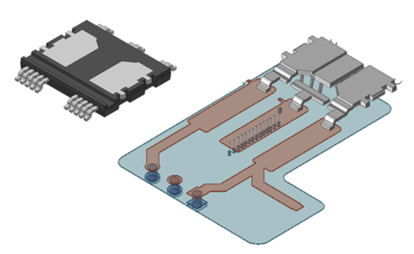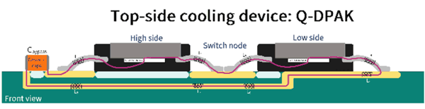 I-Loop开关单元 是一种标准设计,其中MOSFET安装在PCB底面,其余器件位于PCB顶面。这种配置虽然适用于许多应用,但在最大限度地降低寄生电感方面,存在一定局限,特别是在高频系统中。