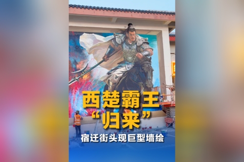 西楚霸王“归来”!宿迁街头现巨型墙绘 3D效果拉满