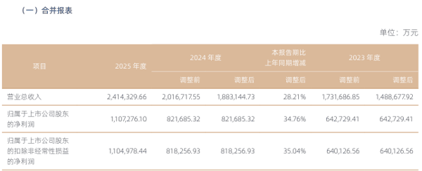 4月17日晚间, 国信证券 股份有限公司(下称“ 国信证券 ”,002736)发布2025年年度报告。年报显示,2025年国信证券实现营业总收入241.43亿元,同比增长28.21%;实现归属于上市公司股东的净利润110.73亿元,同比增长34.76%;归属于上市公司股东的扣除非经常性损益的净利润为110.50亿元,同比增长35.04%。