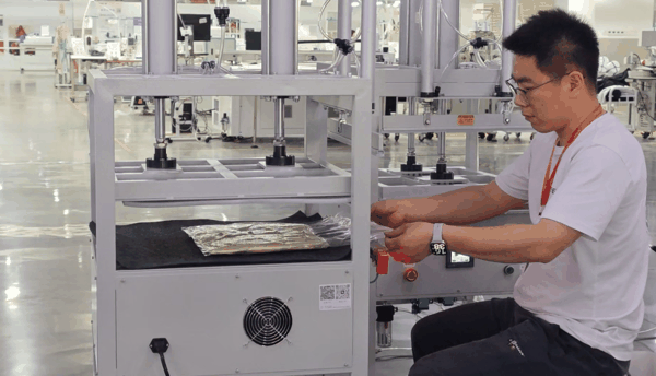 据希音服装制造创新研究中心有关负责人介绍,这款设备专为羽绒服、棉服、毛衣、枕芯、毛绒玩具等体积较大且蓬松的物品包装与封口而研发,通过气缸压缩排出包装袋中的空气,实现物品紧密裹包。与市面上已有设备相比,用户可根据自身习惯自由切换全自动或半自动模式,全自动模式可用电脑触屏实现数智化控制,半自动模式可配合脚踏板来完成操作;其采用的3D悬浮连接技术,在提升设备稳定性的同时,还延长了气缸的使用寿命。充分压缩物品体积后,能有效减少储存空间和物流成本,并具备防尘、防脏、防潮的效果。