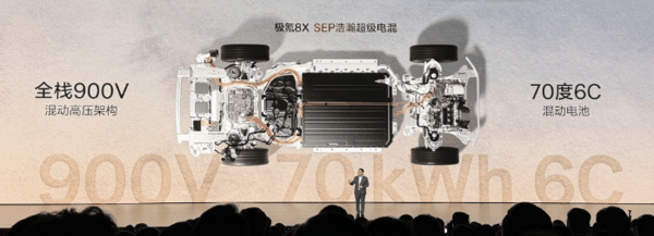作为与极氪9X同源打造的旗舰车型,极氪8X具备SEP浩瀚超级电混、浩瀚AI数字底盘、浩瀚安全盔甲、千里浩瀚G-ASD辅助驾驶系统四大核心能力。