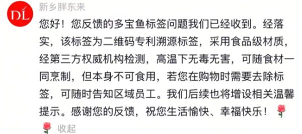 胖东来多宝鱼被指吃出金属标签异物!胖东来紧急回应
