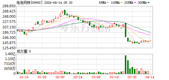 截至4月13日收盘,泡泡玛特股价涨0.40%,报151.5港元/股。