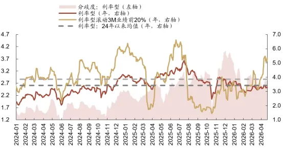 久期则需观察市场中枢是否系统性抬升。若后续市场行为过度一致,利率债基久期中枢再度突破4年,可能需要警惕长端市场过于拥挤的风险。此外,从长短端利率定价来看,随着1年、10年国债收益率下破1.15%、1.75%,当前市场利率或提前定价了部分降息预期。如果后续行情持续发展,如1年、10年国债收益率下破1.10%、1.70%,可能同样需要关注利率低位的风险。