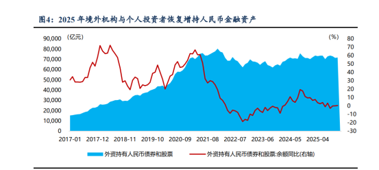 综合 来看,近期人民币汇率持续攀升是多重因素共同作用的结果:外部层面,美元指数走弱为人民币升值创造了有利环境;内部层面,中国经济基本面稳健、外贸顺差扩大和人民币资产吸引力提升构成了坚实支撑。我们认为,未来一段时间随着地缘风险边际减弱,外部环境回稳态势有望延续,出口维持稳健,扩内需政策也将进一步发力显效,再加上国内权益吸引力,人民币汇率或延续波动下小幅升值趋势。