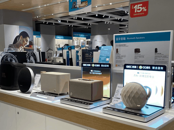 2. 场景化体验:顺电的客厅影音区、客吉莱的旅行数码区、免税店的高端礼品区,分别与Q30的家庭影院场景、Q20的户外便携场景、全系列的礼赠场景高度契合,让产品卖点从参数变为可感知的真实体验。