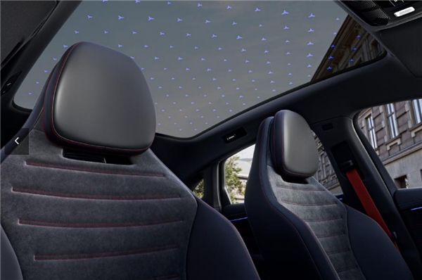 新车配备星空顶全景天窗、升级隔音与全新座椅系统,前排座椅支持按摩、通风、4D音效,联动舒适管理系统。