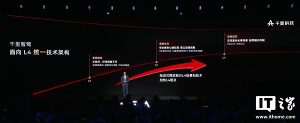 赵明还特别强调,这里仅表示千里科技的技术路线,不代表 L2 到 L4 中间的过程,避免引起误解。 赵明认为现在车圈的很多讨论很有趣,和他奋斗了 10 年的机圈很像,但车圈还是比较文明,机圈的正常沟通言辞比较激烈 。