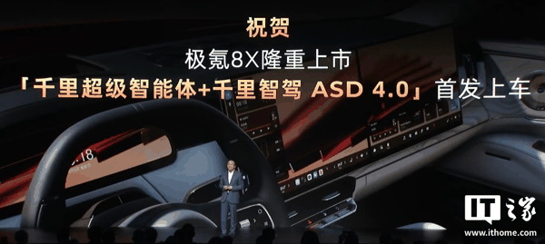 极氪 8X 已实现千里超级智能体 + 千里智驾 ASD 4.0 的首发上车。