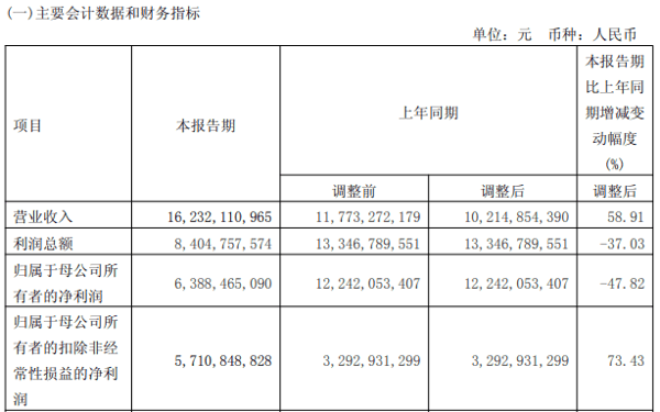4月24日晚间, 国泰海通 证券股份有限公司(下称“ 国泰海通 ”,601211.SH,02611.HK)发布《2026年第一季度报告》称,报告期内,公司实现营业收入162.32亿元,同比增长58.91%;归属于母公司所有者的净利润(下称“净利润”)63.88亿元,同比减少47.82%。