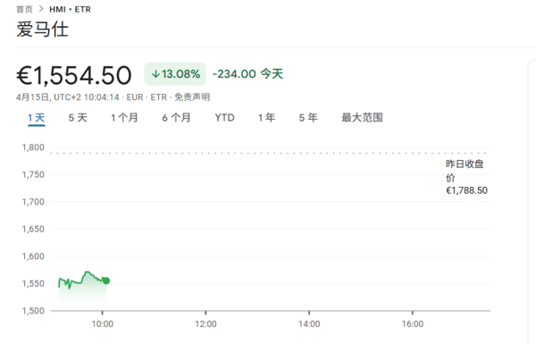 爱马仕股价暴跌13%,创下有记录以来最大盘中跌幅。开 云集 团下跌10%。两家公司业绩还拖累整个奢侈品板块。