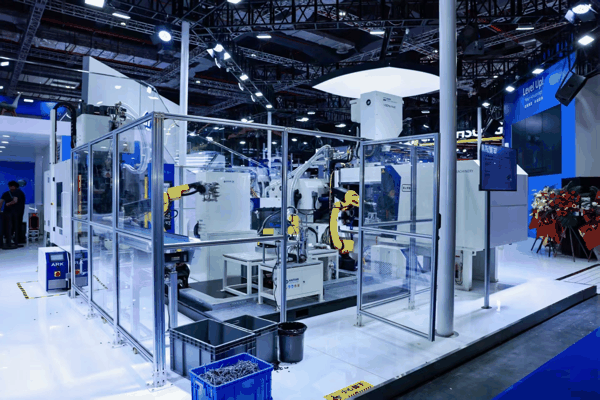 展会现场,一台MA1600V/570Ultra演示了家电行业多腔嵌件解决方案,充分体现了设备在复杂工艺条件下的高稳定性与科学注塑能力,可更好满足医疗、光学、电子等高端应用场景对于高精度成型的严苛要求。