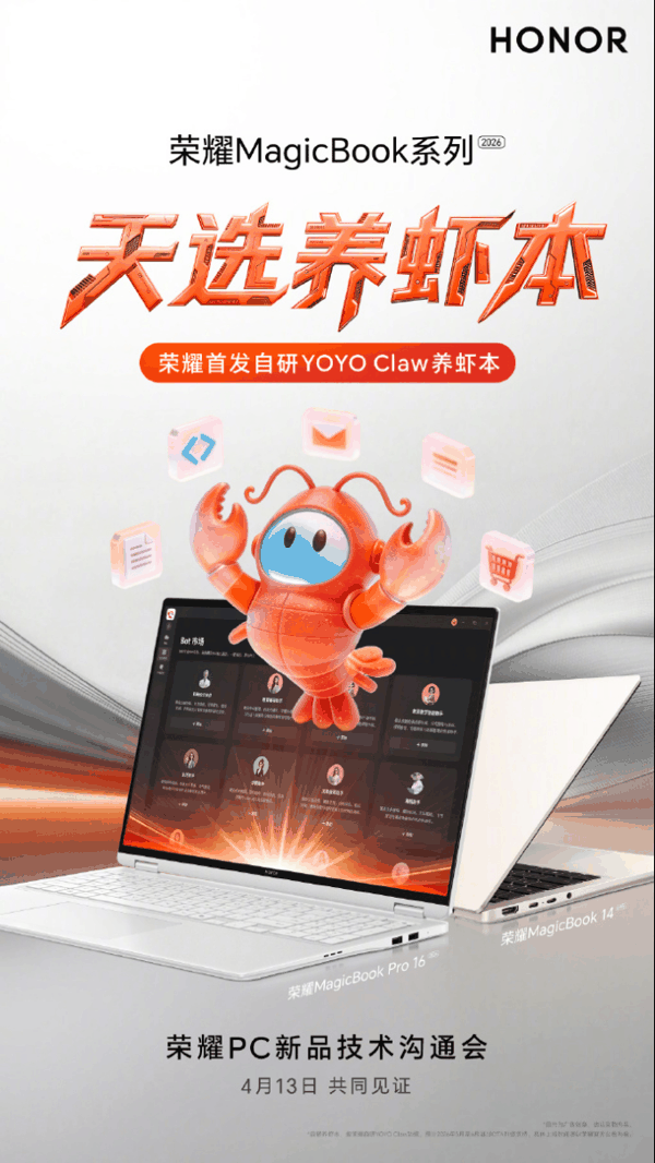 4月13日下午,荣耀举办PC新品技术沟通会,直接给出今年PC产品线的重磅内容。这场沟通会的主角是荣耀WIN游戏本,同时也带来MagicBook系列轻薄本的全新信息,正式宣告2026年荣耀PC进入全面爆发期。