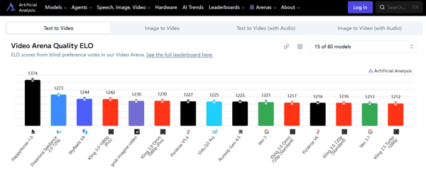 Al测评平台文生视频模型(不纳入音频)榜单平台网站截图