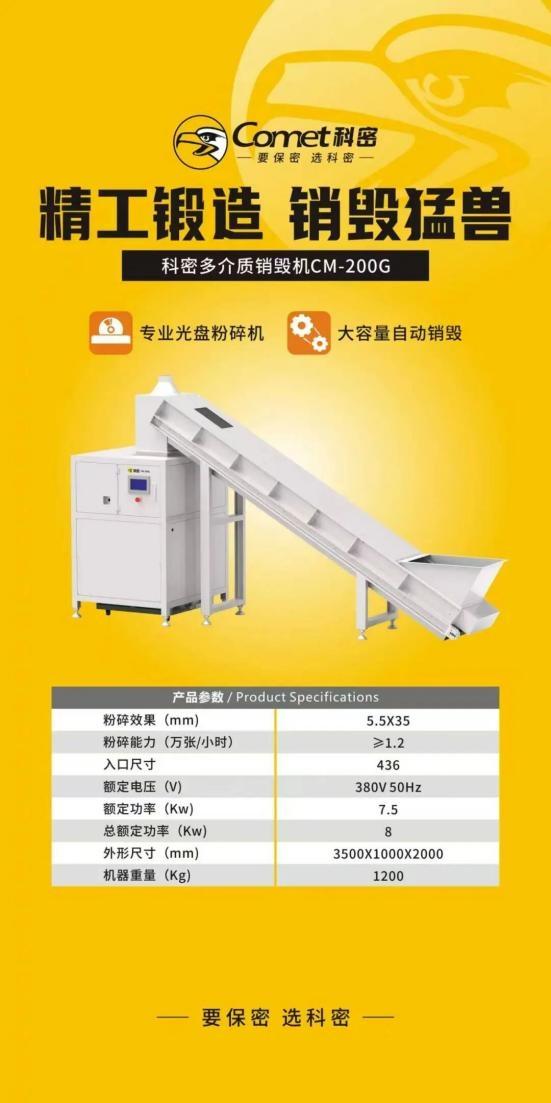 全面升级的碎纸打包一体机,最大碎纸量高达5吨/小时,可24小时不停机运行,适配大批量销毁需求;还有备受关注的科密多介质销毁机,新品搭载专业光盘粉碎功能,凭借大容量自动销毁优势,可从容满足各类载体的涉密销毁需求。