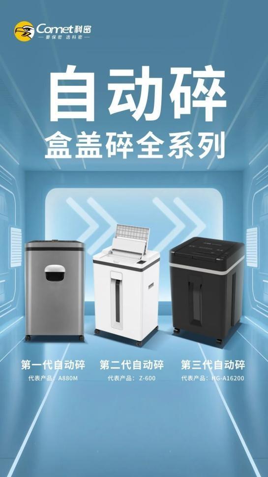 深耕涉密销毁领域33年的科密,拥有近40款国家保密认证产品,可覆盖全品类销毁需求。本次峰会,科密重磅推出四大核心新品,以技术创新适配多元涉密销毁场景、升级用户体验:全新闪电系列碎纸机,实现新的速度突破,涵盖5米中高速、6米中高速、7米高速多种型号,可实现碎纸效率翻倍;迭代升级的自动碎“盒盖碎”系列,以便捷化、效率化设计带来操作流程的全面优化,让涉密销毁更高效省心。