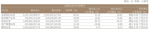 其中,证券经纪业务以51.41亿元的营业收入规模居首,同比增长41.39%,客户资产规模突破万亿,日均资产超8000亿元;投资业务则以69.75%的增速领跑,全年贡献营业收入19.50亿元,毛利率达73.67%;投资 银行 业务实现7.51亿元营业收入,同比增长10.91%。