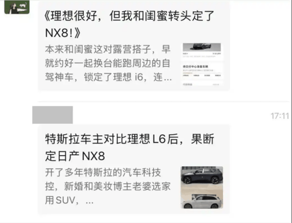 然而,伴随着新车亮相,各大社交平台上突然涌现出大量将 NX8与理想L6、理想i6进行对比的帖子,且结论惊人一致 , 即 一边倒地推荐 NX8。