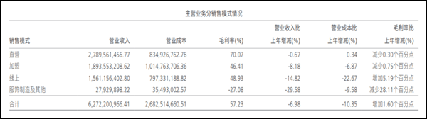 门店结构的调整呈现出明显的“直营保、加盟弃”特征:2025年直营店净关闭75家,加盟店净关闭300家,加盟关店数量是直营的4倍。这一趋势在2026年一季度仍在延续,直营净关20家,加盟净关42家。