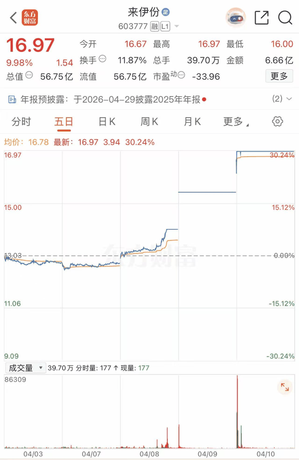 近日,“休闲 零食 第一股” 来伊份 (603777) 迎来资本市场狂欢,4月8日~10日连续三个交易日涨停,市值随之升至56.75亿元。