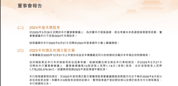 公告称,此次分红派息方案将提请2025年度股东周年会批准。