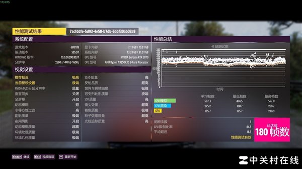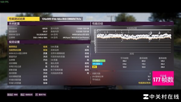 可以看到在《CS2》中,单根16GB DDR5 6000内存比双16GB DDR5 6000内存成绩,常规帧数低了3.7帧,而1%low帧还提升了一点。下面咱们在来看一看《极限竞速:地平线5》。