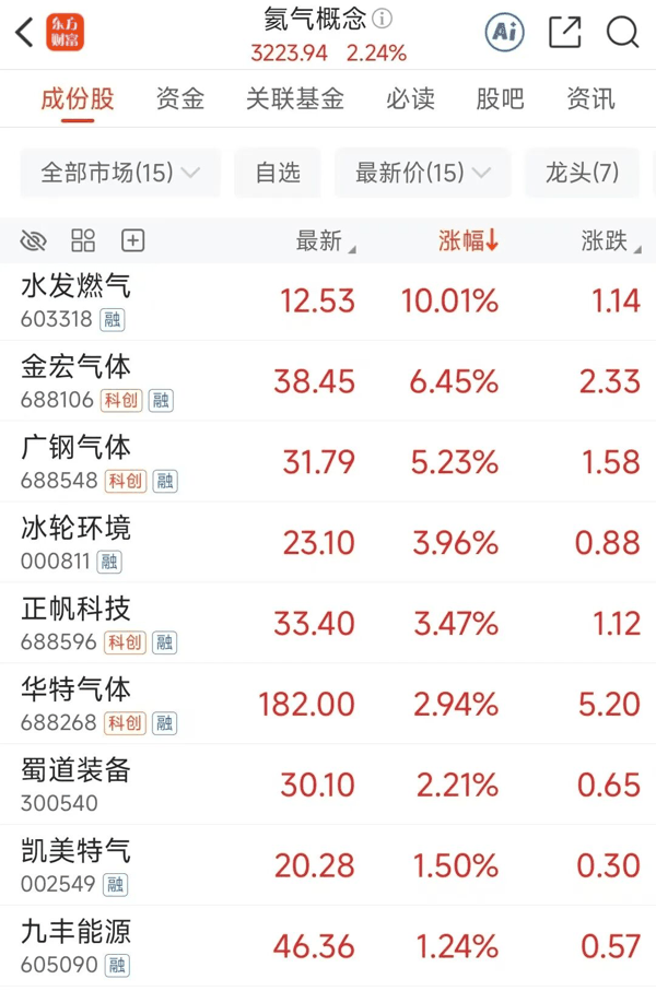 至于电子化学品,市场主要集中在以氦气为主的电子特气方向, 水发燃气 、 金宏气体 、 广钢气体 、 华特气体 等近几日股价明显拉升。