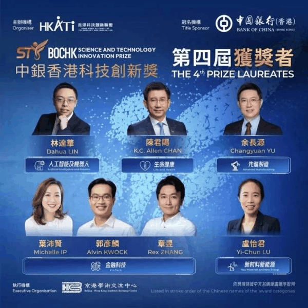 中银香港科技创新奖于2022年设立,由香港科技创新联盟主办、中银香港冠名赞助,是香港及大湾区创客领域的标志性奖项。奖项旨在奖励主要在香港(或香港机构设在粤港澳大湾区的科研相关公司)进行科学技术创新和科学技术成果转化,并取得杰出成就的科学技术工作者和科研团队。奖项共设五个领域,各领域每届评选出一位获奖者,获奖者或获奖团队将获得由中银香港赞助港币200万元的奖金。