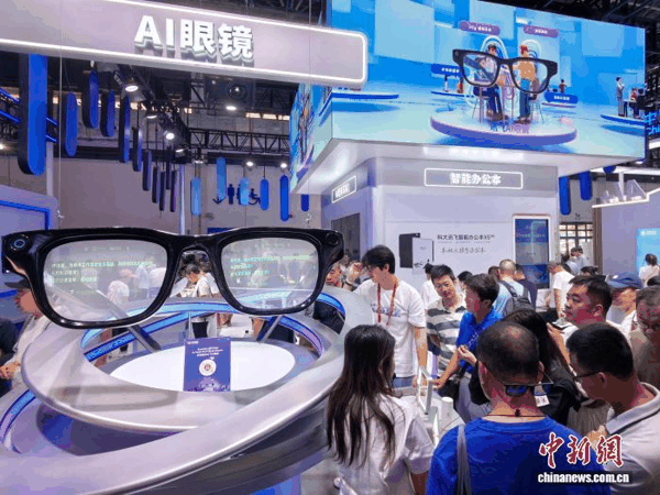 4月16日,众多消费者在科大讯飞展台体验 AI眼镜 。中新网记者王子谦摄