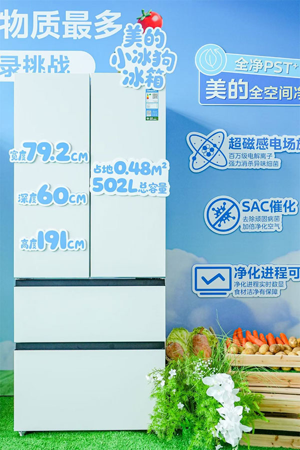 在技术创新的基础上,美的冰箱联合京东推出了小冰狗冰箱。该产品在保持较小占地面积的同时实现了较大容积,其792mm整机宽度适配主流精装房预留尺寸,约0.48平方米的占地实现了502L的存储空间,提升了空间利用效率。全净PST+7.0(PST+智能净化全空间版本)的搭载,为家庭成员的食材存储健康提供了技术保障。