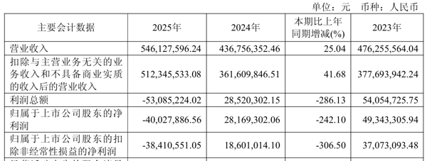 当日晚间, 公司交出上市以来首份净利亏损的业绩报告。数据显示,公司2025年实现营业收入5.46亿元,同比增长25.04%;归母净利润为-4,002.79万元,同比减少242.10%; 扣非净利润为-3,841.06万元,同比减少306.50%。