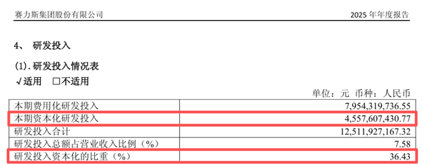赛力斯 在年报中表示,公司2025年研发投入的资本化比重同比增加,主要由于进入开发阶段的研发项目金额增加。