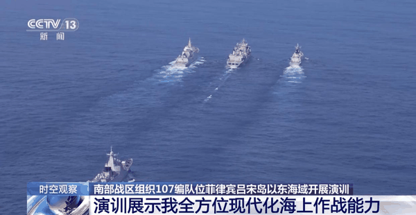 南部战区24日发布:近期,中国人民解放军南部战区组织107编队位菲律宾吕宋岛以东海域开展演训活动,重点进行实弹射击、海空协同、快速机动、航行补给等演练,检验一体化联合作战能力。这是针对当前地区局势采取的必要行动,符合相关国际法和国际实践。战区部队将根据安全形势需要,常态组织有关军事行动,维护国家主权安全和地区和平稳定。