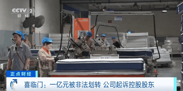 总台央视记者刘怡乐:最近一周,喜临门接连曝出重大经营风险。公司更是直接将控股股东告上法庭,一场“子告父”风波正在行业内上演。目前公司的经营仍然正常,产线也在正常运转,厂区内也一直有货车进出。